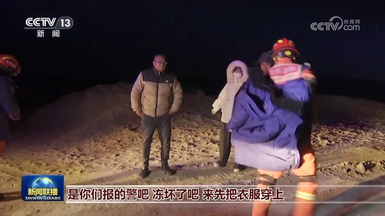 晚上7時(shí),天色漸漸暗了下來(lái)。這里的溫度將會(huì)降到零下20攝氏度以下,加上有多種野生動(dòng)物威脅、高原缺氧等因素,如果夜晚在這里被困,會(huì)有生命危險(xiǎn)。晚上9時(shí),經(jīng)過(guò)4個(gè)多小時(shí)的搜尋,救援人員終于在距離被困車輛5公里的地方找到了3名失聯(lián)人員。