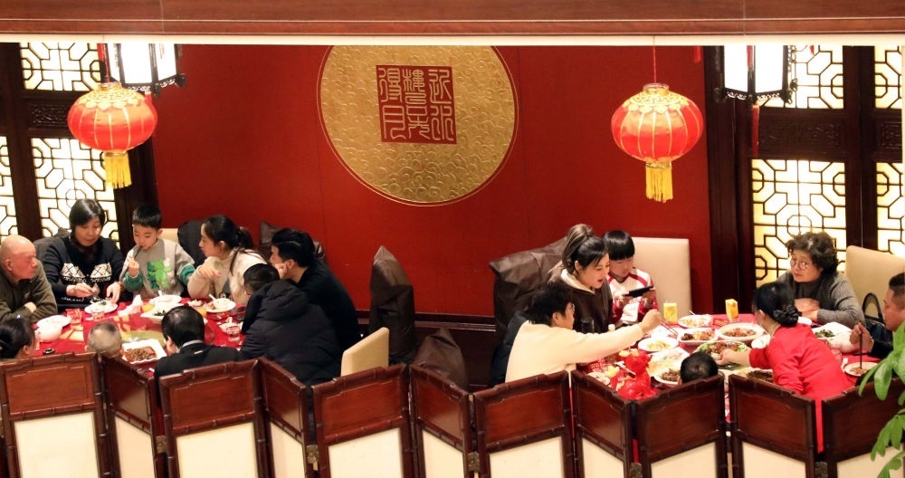 2024年2月9日,人們在江蘇省蘇州市一家餐館內享用團圓飯。新華社發(fā)(杭興微 攝)