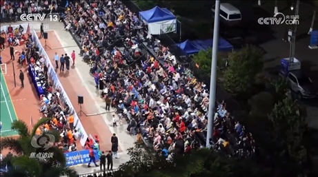 2月4日下午,海南文昌市文城鎮(zhèn)玉陽(yáng)公園里正在進(jìn)行一場(chǎng)排球賽,場(chǎng)上對(duì)戰(zhàn)的是馮坡鎮(zhèn)五龍戰(zhàn)隊(duì)和文昌龍樓鎮(zhèn)航天小鎮(zhèn)隊(duì)。參賽隊(duì)員都是本地人,而觀眾則是來(lái)自天南地北。最終,龍樓鎮(zhèn)航天小鎮(zhèn)隊(duì)以3:1戰(zhàn)勝了馮坡鎮(zhèn)五龍戰(zhàn)隊(duì)。黃前穎是龍樓鎮(zhèn)航天小鎮(zhèn)隊(duì)的隊(duì)員,他從6歲就開始玩排球,玩著玩著就變成了熱愛。