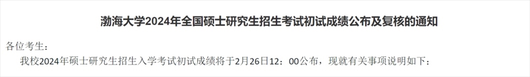 渤海大學(xué)考研初試成績(jī)公布
