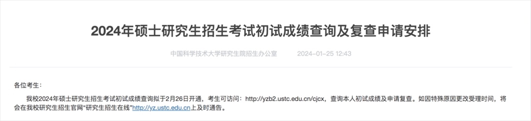 中國(guó)科學(xué)技術(shù)大學(xué)考研初試成績(jī)查詢(xún)