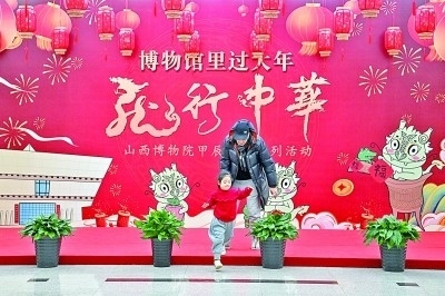 小朋友和家長(zhǎng)在山西博物院游玩。新華社發(fā)