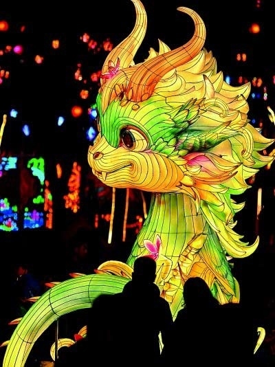 在山東,淄博花燈藝術(shù)節(jié)首次采用大型花燈和沉浸式演出融合的模式。有著悠久歷史的四川自貢燈會(huì)今年則引入了新材料,《如夢(mèng)飛天》燈組首次嘗試采用水溶性樹(shù)脂塑形,使人物面部猶如真人。在上海,豫園燈會(huì)成為人氣最旺的地方之一,眾多市民游客慕名而來(lái),欣賞“一夜魚(yú)龍舞”的盛景。“今年的燈會(huì)延續(xù)了去年山海奇豫記主題,開(kāi)啟了山海經(jīng)主題,街道上方大量的金魚(yú)彩燈,建筑上盤(pán)踞的巨龍彩燈,讓人如同走進(jìn)龍宮,這就是中式浪漫吧!”網(wǎng)友“小凱”在社交平臺(tái)講述自己游覽豫園燈會(huì)后的感受。