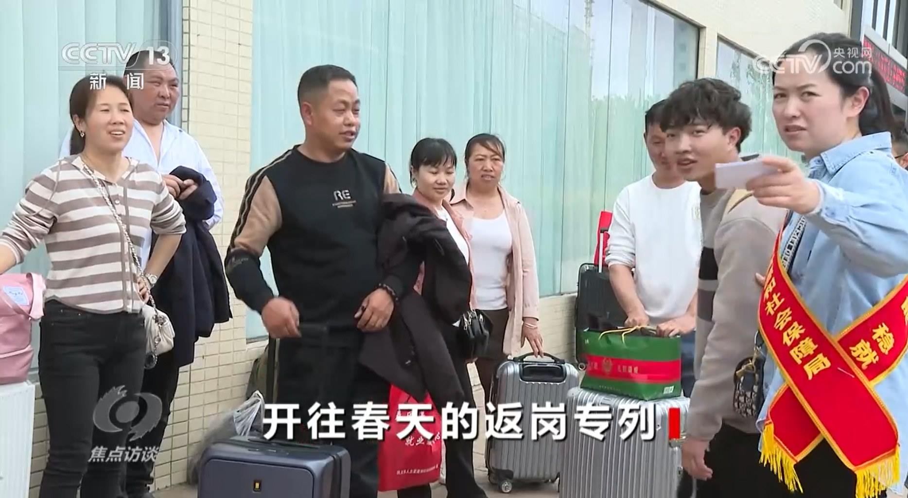 央視網(wǎng)消息(焦點訪談):春節(jié)假期一過,各地迎來了務(wù)工人員返崗高峰期。各地各部門組織的返崗專列、專車、專機,頻繁穿梭在繁忙的交通線上。作為勞務(wù)輸出大省,貴州省跨省務(wù)工的農(nóng)村勞動力常年動態(tài)保持在600萬人左右,務(wù)工收入占到了農(nóng)村家庭總收入四成以上,占脫貧勞動力家庭收入七成以上。大量的務(wù)工人員集中在節(jié)后要趕往千里之外的工作地點,有的還要找崗位,怎么幫助他們呢?
