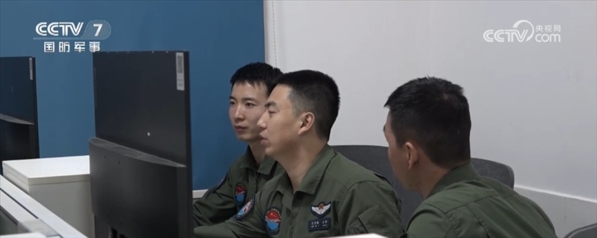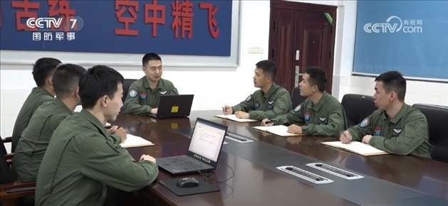 某軍用機場,王文毅和戰(zhàn)友剛剛結束飛行訓練,就一頭扎進飛行講評室對這次的訓練數據進行分析梳理。