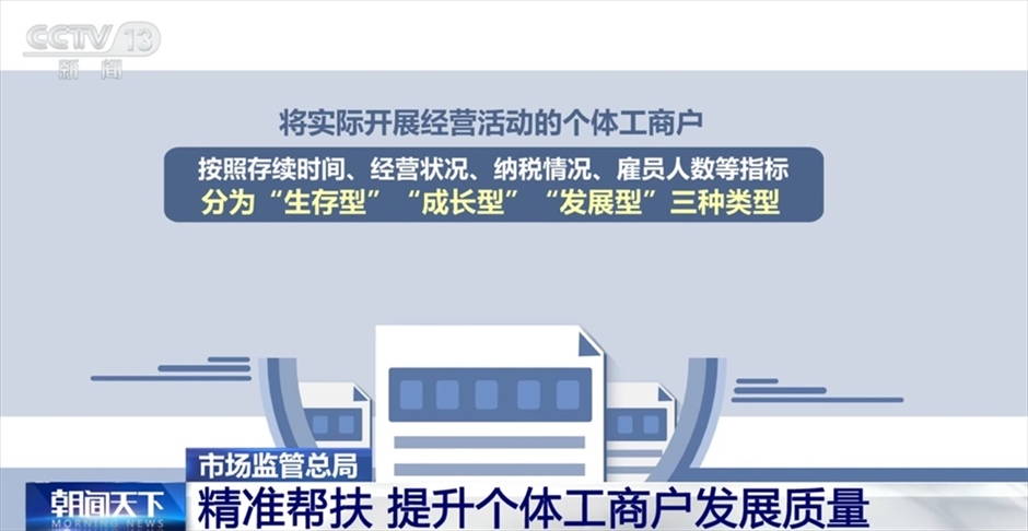 市場監(jiān)管總局相關(guān)負責(zé)人介紹,下一步將繼續(xù)采取措施,讓處于初創(chuàng)階段的“生存型”個體工商戶更好地“活下來”,讓處于穩(wěn)定經(jīng)營階段的“成長型”個體工商戶“走得穩(wěn)”“行得遠”,讓處于持續(xù)壯大階段的“發(fā)展型”個體工商戶“做得強”。