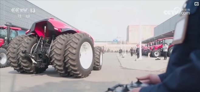 在這個數(shù)字項目區(qū),拖拉機生產(chǎn)的幾十道工序都在不斷優(yōu)化創(chuàng)新。這個沒有駕駛艙,更沒有駕駛員的拖拉機可以自由行走,指揮它行動的是一部手持操作面板,這是中國一拖新上線的無人駕駛拖拉機。