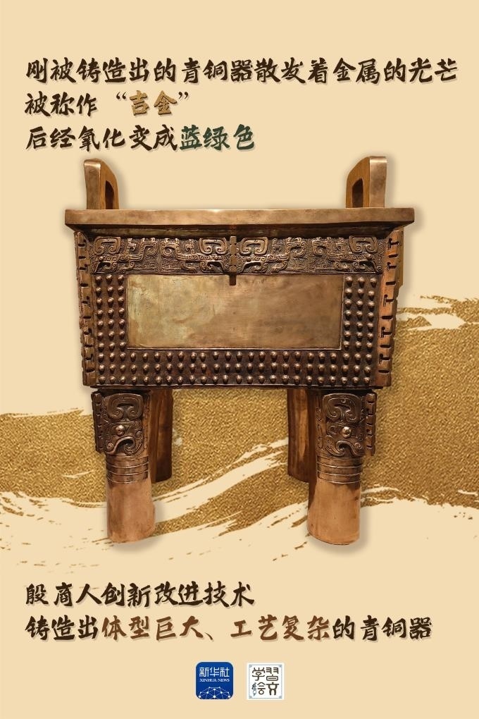 何毓靈介紹,“冶金術(shù)經(jīng)過夏代、商代早中期不斷創(chuàng)新突破,中原鑄造出了冠絕時(shí)代的‘國之重器’?!?/p>