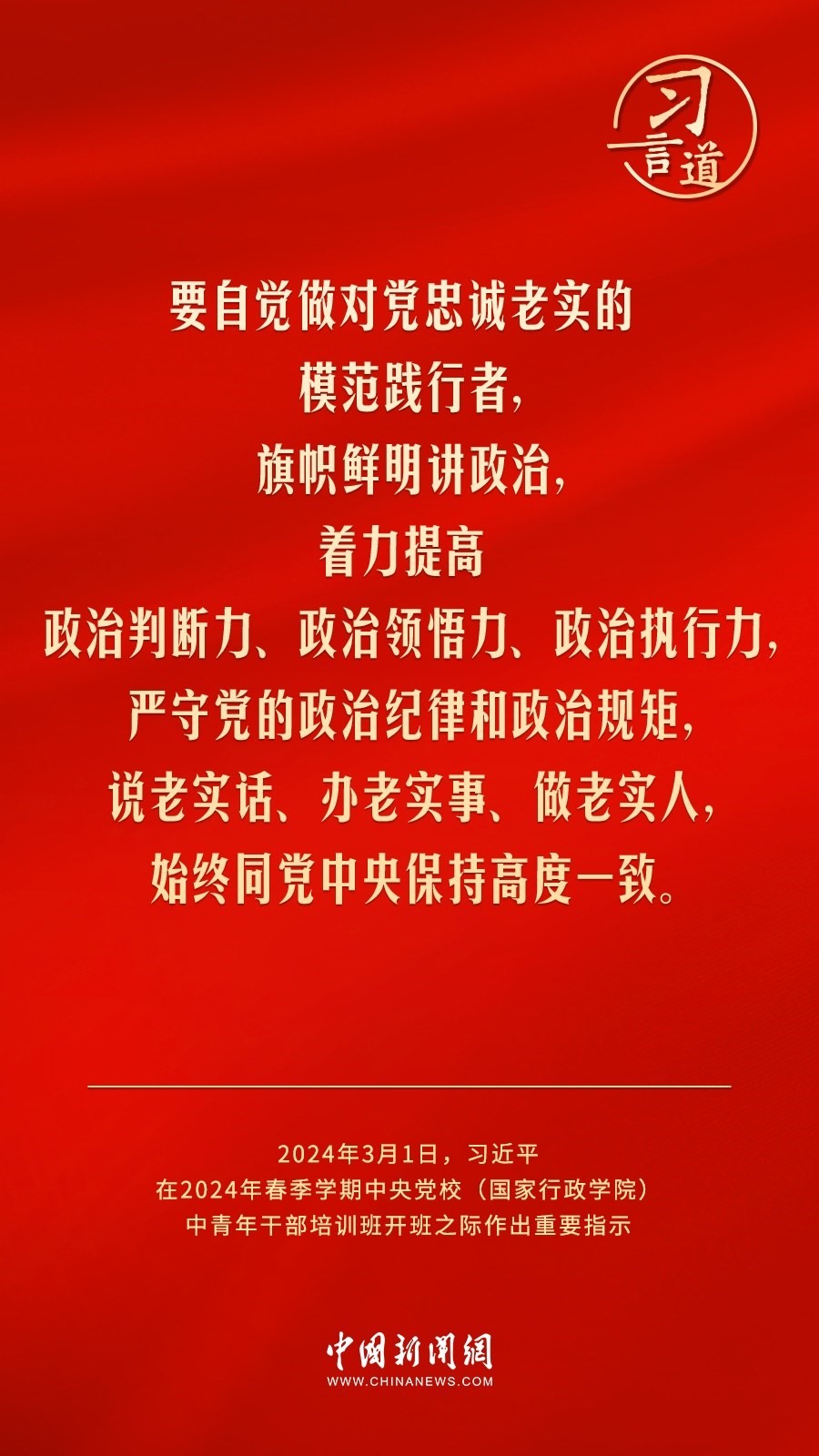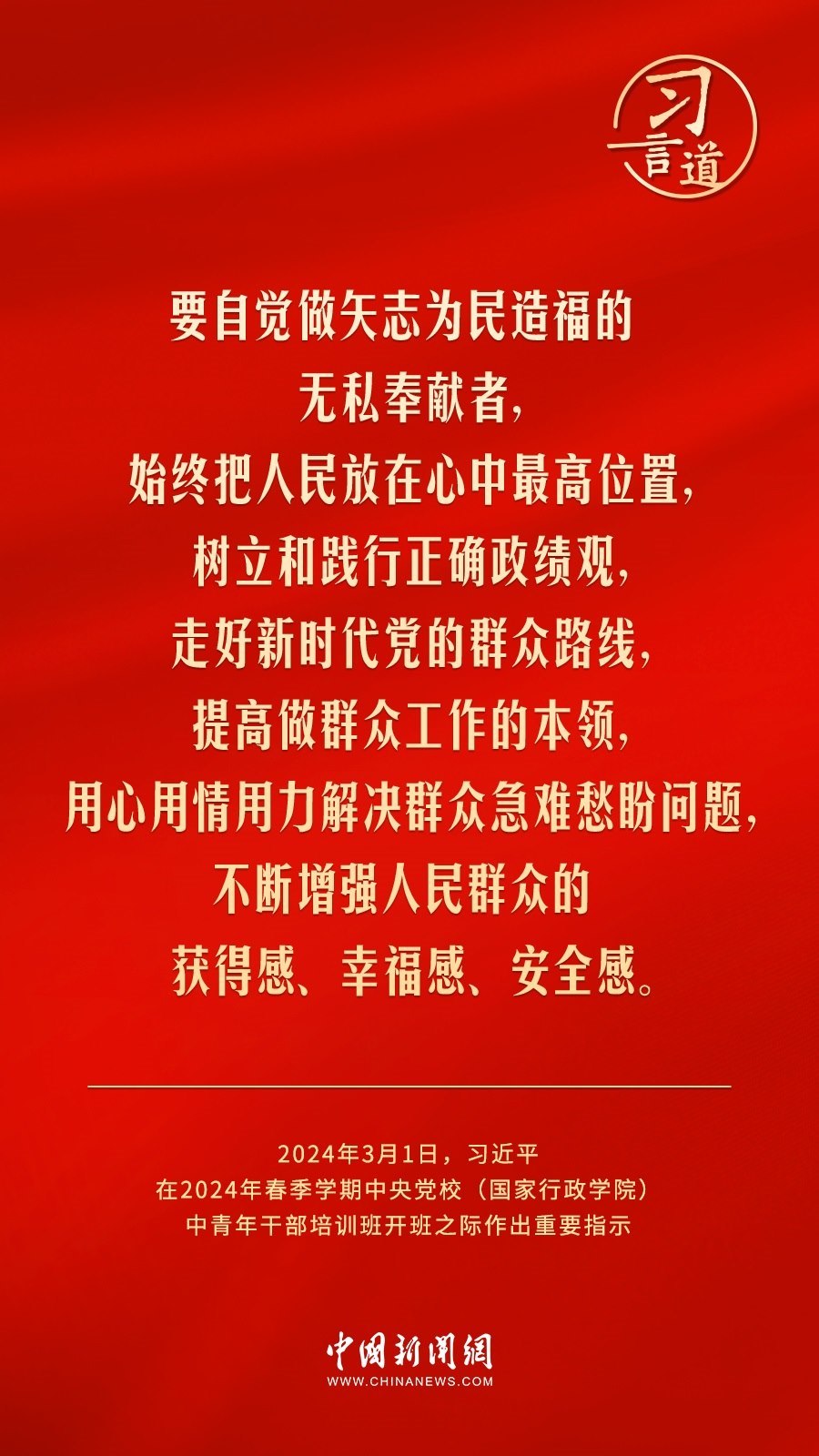 2024年春季學(xué)期中央黨校(國(guó)家行政學(xué)院)中青年干部培訓(xùn)班3月1日上午在中央黨校開(kāi)班。中共中央總書(shū)記、國(guó)家主席、中央軍委主席習(xí)近平作出重要指示,他強(qiáng)調(diào)——