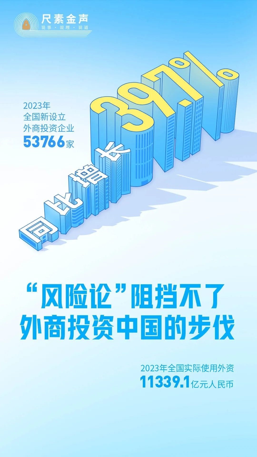 事實證明,任何抹黑誤導(dǎo)都阻擋不了外商來華投資步伐,中國制造展現(xiàn)出的強(qiáng)大韌性、活力和潛力,不會因花樣翻新的“唱衰”論調(diào)而改變。2023年,全國實際使用外資金額11339.1億元人民幣,仍處歷史高位;全國新設(shè)立外商投資企業(yè)53766家,同比增長39.7%。中國一直都是外商投資興業(yè)的沃土。
