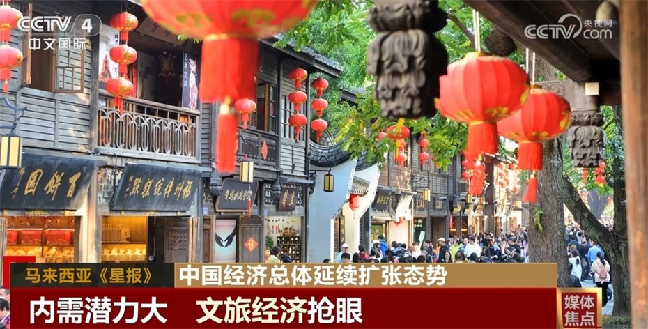 我們再來看馬來西亞《星報(bào)》的報(bào)道——中國內(nèi)需潛力大,文旅經(jīng)濟(jì)搶眼。中國內(nèi)需市場潛力巨大,旅游業(yè)、服務(wù)業(yè)消費(fèi)活力持續(xù)增長,其中文旅經(jīng)濟(jì)發(fā)展搶眼。中國文旅業(yè)持續(xù)創(chuàng)新商業(yè)模式,憑借特色化、智能化的旅游產(chǎn)品和服務(wù)帶給游客良好體驗(yàn)。以大數(shù)據(jù)為核心的互聯(lián)網(wǎng)生態(tài)體系,融合應(yīng)用AR、VR新技術(shù),游客只需通過手機(jī)掃一掃就可獲得“導(dǎo)游、導(dǎo)覽、導(dǎo)航、導(dǎo)購”一體化的多功能綜合應(yīng)用,方便快捷。