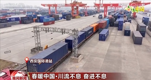 忙碌起來的不只是港口,西安國際港站汽笛聲聲、班列轟鳴,龍門吊正加緊作業(yè)。這輛滿載光伏設備和新能源汽車等貨物的中歐班列,預計9天后將抵達目的地——烏茲別克斯坦塔什干。在這里,平均每1小時40分鐘就有一列中歐班列出發(fā)或到達?!耙粠б宦贰苯ㄔO讓西部成為開放前沿,開放是一種理念、一條路,更是一種胸襟。?