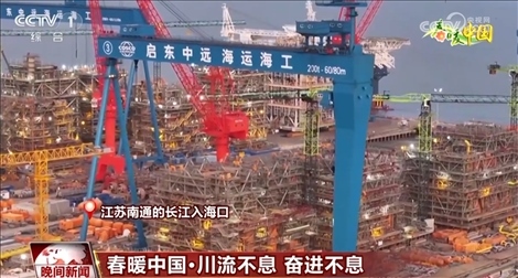 在江蘇南通的長江入???,一個個造型各異的“巨無霸”讓人震撼。眼前的這艘海上浮式生產儲油輪已經進入最后的模塊吊裝施工階段。與此同時,自升式風電安裝船、全球最大集裝箱船等重點高端產品不斷取得突破。長江入??谑墙K點也是起點,所謂突破就是將終點當成起點,不停出發(fā)。