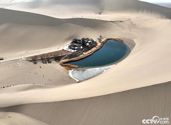 3月6日,隨著氣溫回升,甘肅省敦煌市月牙泉冰消泉開,碧波蕩漾,景色如畫。