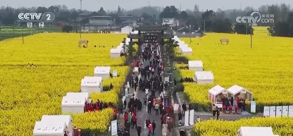 除了“花田火鍋”,在以油菜花田為背景的鄉(xiāng)村道路上,各類裝滿當?shù)靥厣r(nóng)產(chǎn)品的攤位依次擺開。游客們迎著花香趕大集,帶走春日特有的伴手禮。