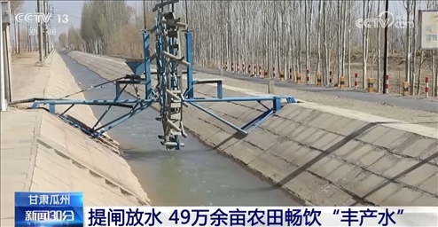 在甘肅瓜州,隨著疏勒河流域灌區(qū)引水閘閘口開啟,各灌區(qū)陸續(xù)提閘放水,讓49萬余畝農(nóng)田按時足量喝上開春“豐產(chǎn)水”。