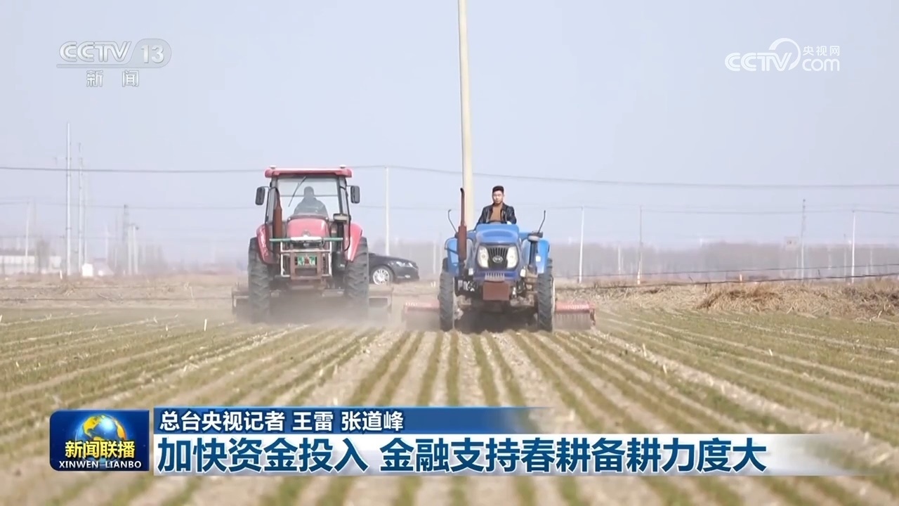 央視網(wǎng)消息(新聞聯(lián)播):今年以來,金融機構(gòu)持續(xù)加大對春耕備耕的資金投入。截至2月末,全國糧食重點領(lǐng)域貸款余額、普惠型涉農(nóng)貸款余額均保持較快增長。
