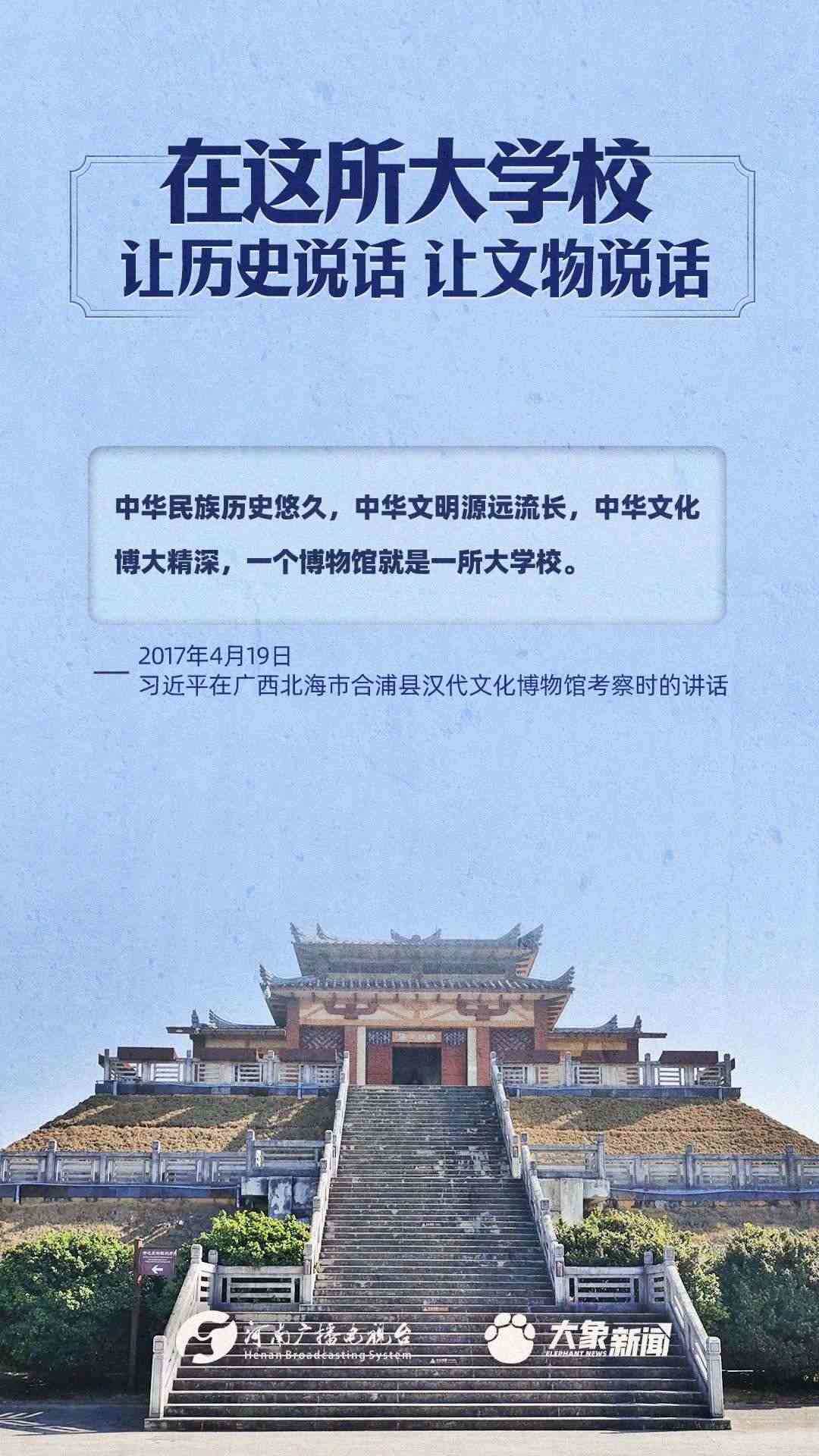 習(xí)近平總書記一直高度重視博物館工作,多次作出重要講話,強調(diào)“一個博物院就是一所大學(xué)校”,指出“讓歷史說話,讓文物說話”,要求“守護好、傳承好、展示好中華文明優(yōu)秀成果”等等,金句連連。大象新聞進行了認真梳理,邀您一起學(xué)習(xí)。