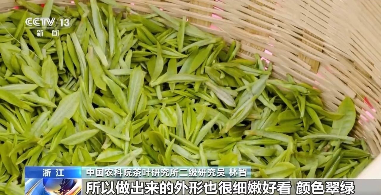 中國農(nóng)科院茶葉研究所二級研究員 林智:所以它有幾個特點(diǎn),第一個就是好看,為什么說好看呢,因?yàn)榇禾觳璧难咳~比較細(xì)嫩,所以也比較金貴,做工一般都比較講究,做出來的外形也很細(xì)嫩好看,顏色翠綠。