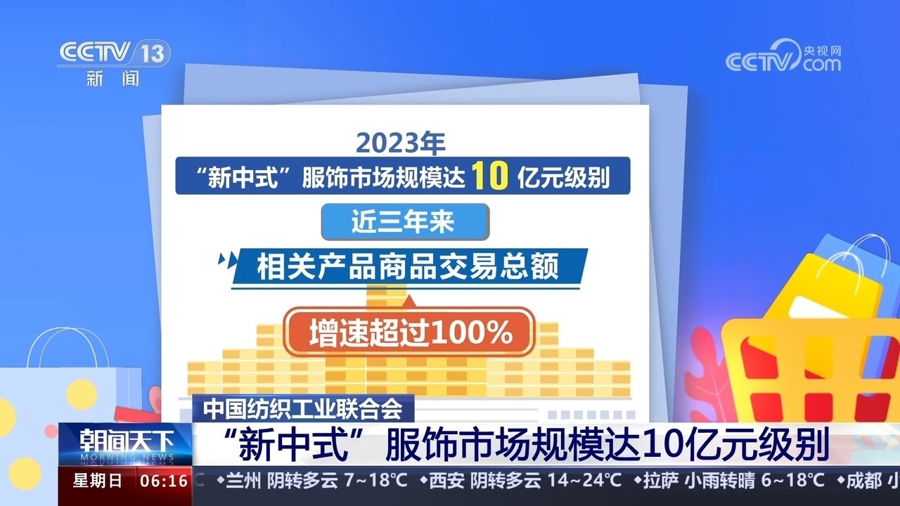 中國(guó)紡織工業(yè)聯(lián)合會(huì)數(shù)據(jù)顯示,2023年“新中式”服飾市場(chǎng)規(guī)模達(dá)10億元級(jí)別,近三年來(lái),相關(guān)產(chǎn)品商品交易總額增速超過(guò)100%。今年1月以來(lái),在互聯(lián)網(wǎng)銷(xiāo)售平臺(tái)上“新中式”“宋錦”的搜索量環(huán)比分別增長(zhǎng)近6倍和近20倍。