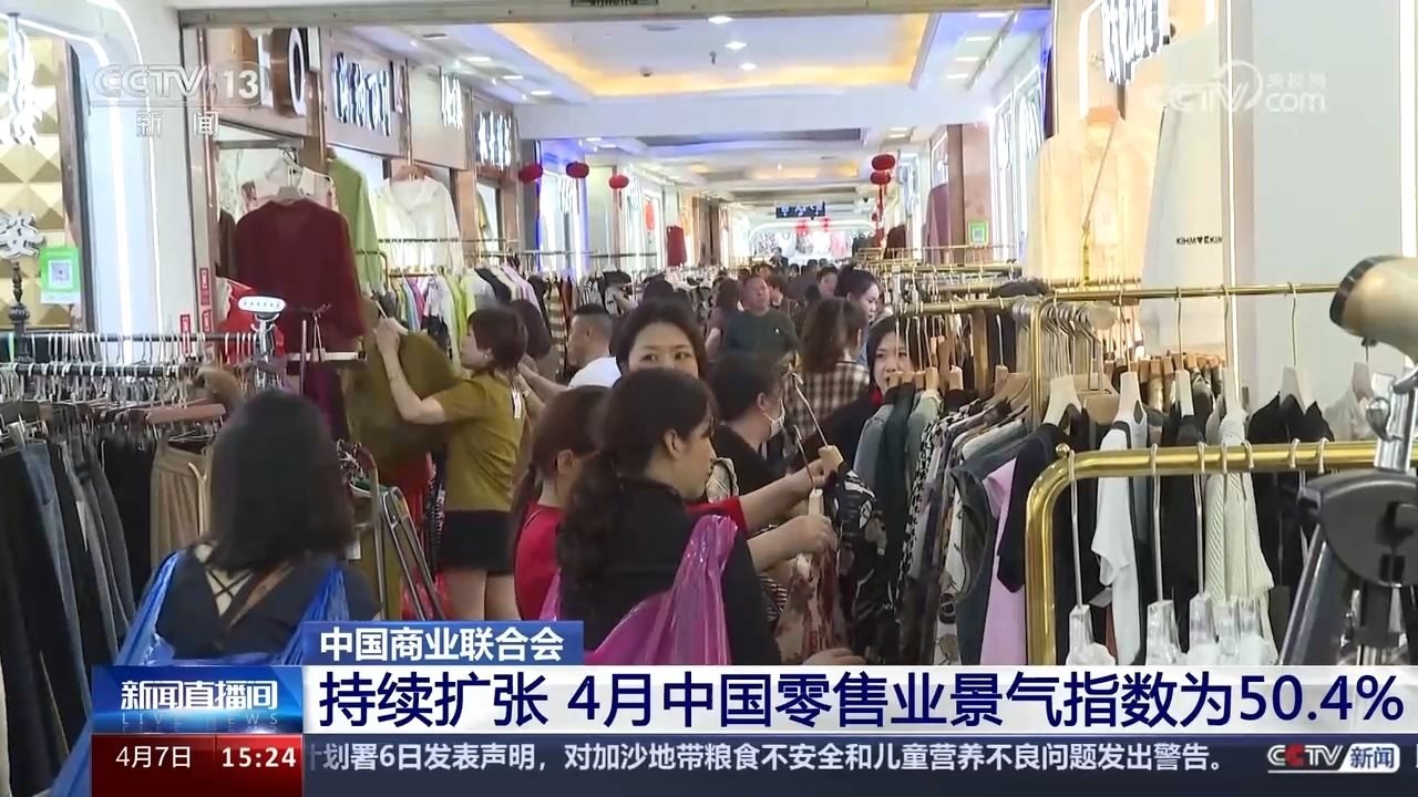 央視網(wǎng)消息:中國(guó)商業(yè)聯(lián)合會(huì)最新發(fā)布的中國(guó)零售業(yè)景氣指數(shù)顯示,4月份,中國(guó)零售業(yè)景氣指數(shù)為50.4%,連續(xù)一年維持在擴(kuò)張區(qū)間。全國(guó)商品經(jīng)營(yíng)類企業(yè)對(duì)4月份盈利增長(zhǎng)恢復(fù)的預(yù)期開始好轉(zhuǎn)。