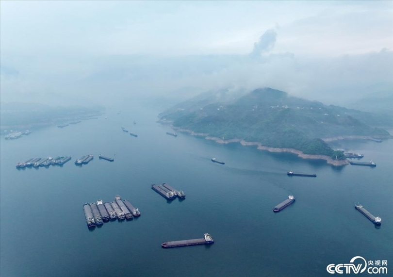 2024年4月10日,湖北宜昌,一場(chǎng)春雨過(guò)后,秭歸縣峽江兩岸煙雨朦朧,船行其間,宛如一幅水墨畫(huà)卷。