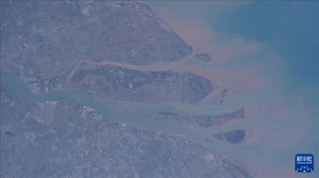 神舟十七號航天員乘組鏡頭里的地球家園,這是航天員湯洪波在中國空間站拍攝的長江入??凇?/p>