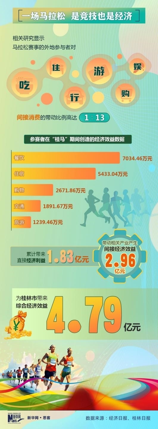 3月17日落幕的桂林馬拉松,根據(jù)測(cè)算,因賽事帶來的直接經(jīng)濟(jì)效益1.83億元,并帶動(dòng)相關(guān)產(chǎn)業(yè)產(chǎn)生間接經(jīng)濟(jì)效益2.96億元。今年的無錫馬拉松參賽者在錫馬期間創(chuàng)造餐飲、住宿、交通、旅游等經(jīng)濟(jì)效益2.82億元——這一數(shù)字,較去年提升了45.5%。2024浦口馬拉松期間,全區(qū)接待游客48.9萬人次,實(shí)現(xiàn)旅游消費(fèi)3.6億元。