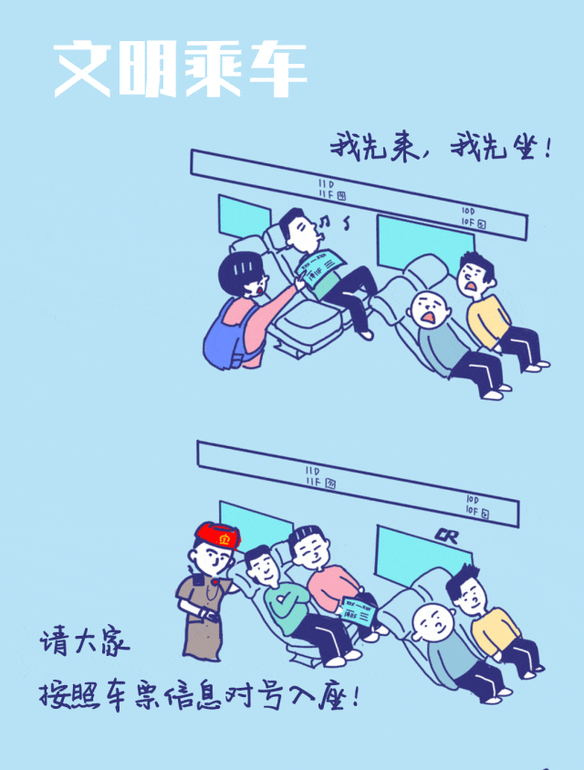 請(qǐng)按照車(chē)票信息對(duì)號(hào)入座 不搶座、不霸座