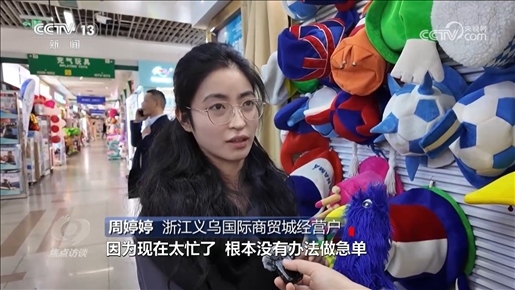 5%是今年一季度我國(guó)的進(jìn)出口增速。外貿(mào)開局有力、起勢(shì)良好。在浙江義烏國(guó)際商貿(mào)城,你能直觀感受到貿(mào)易回暖的跡象。7月份,即將在巴黎舉辦的奧運(yùn)會(huì)給義烏帶來(lái)了商機(jī),商家已經(jīng)提前接到了不少訂單。