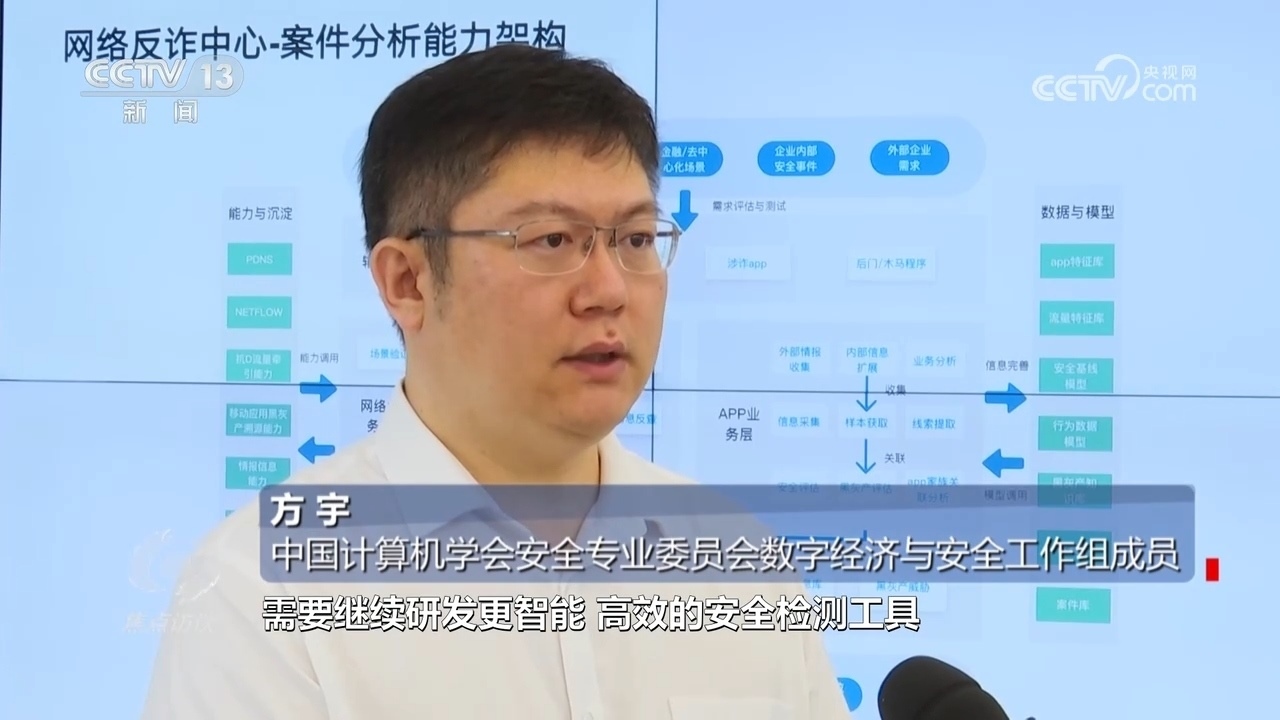 方宇:“下一步,針對涉詐APP的發(fā)現(xiàn),需要繼續(xù)研發(fā)更智能、高效的安全檢測工具,建立涉詐APP的黑名單數(shù)據(jù)庫。另外,結(jié)合一些新型、智能化的技術(shù)手段,通過對網(wǎng)絡流量分析,及時發(fā)現(xiàn)詐騙流量,并通過公安、網(wǎng)信、金融、市場監(jiān)管等部門進一步加強聯(lián)動、信息及時共享、及時進行阻斷,多措并舉,共同努力,形成合力,打擊涉詐APP。”