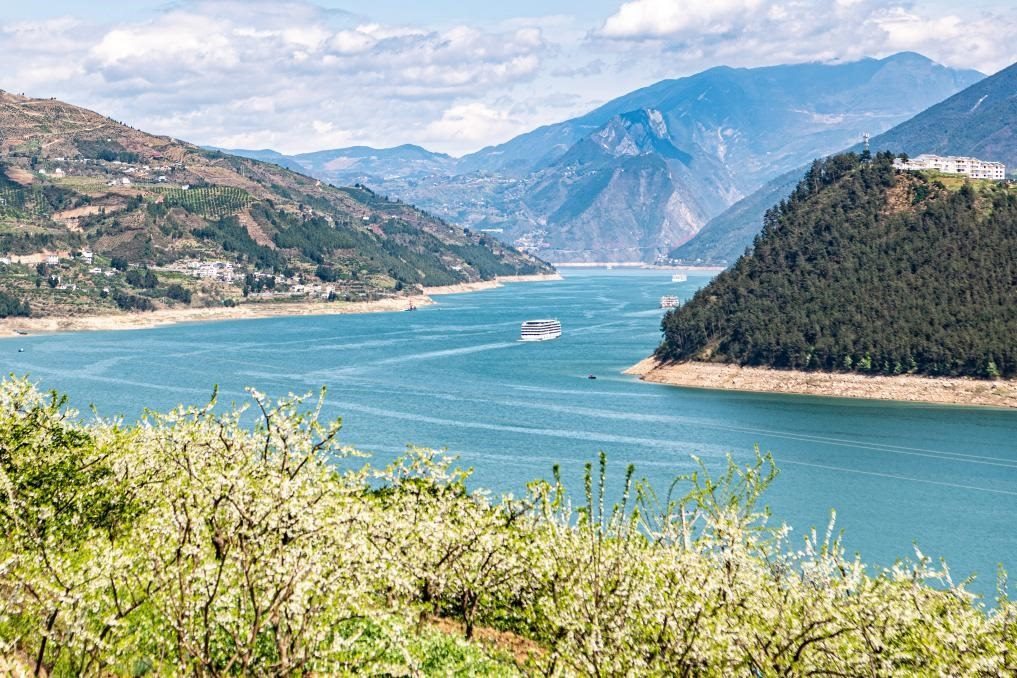 3月25日拍攝的重慶市巫山縣曲尺鄉(xiāng)長(zhǎng)江兩岸的萬(wàn)畝李花。新華社記者 唐奕 攝
