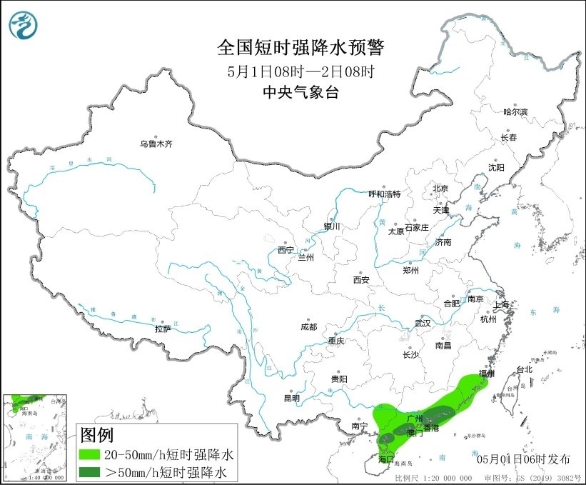 央視網(wǎng)消息:中央氣象臺(tái)5月1日06時(shí)發(fā)布強(qiáng)對(duì)流天氣藍(lán)色預(yù)警:預(yù)計(jì)5月1日08時(shí)至2日08時(shí),廣東南部及沿岸海域等地的部分地區(qū)將有8-10級(jí)雷暴大風(fēng)或冰雹天氣,最大風(fēng)力11級(jí)以上;福建東南部、廣西東部、廣東中南部、海南島東北部及華南沿岸海域等地的部分地區(qū)將有小時(shí)雨量大于20毫米的短時(shí)強(qiáng)降水天氣,其中廣東南部及沿岸海域等地局地最大小時(shí)雨量大于50毫米,最大可達(dá)70毫米以上。