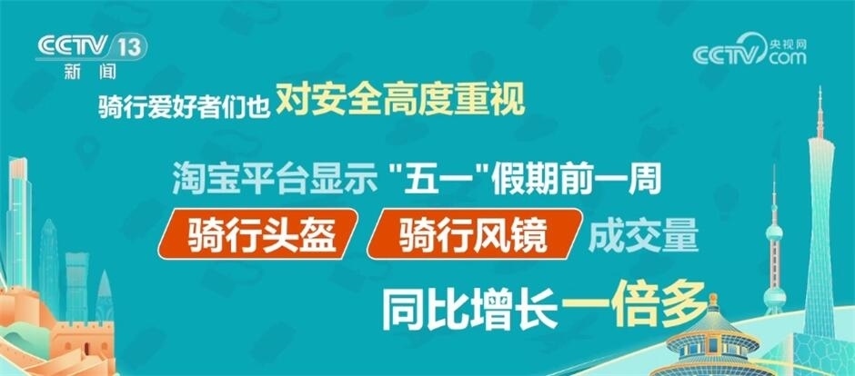 京東數(shù)據(jù)顯示,“五一”前半個月,公路自行車和電助力自行車銷售額的增幅最大,同比增長了兩倍多。騎行服、騎行穿戴裝備、自行車配件的銷售也同比增加一倍多。騎行愛好者們也對安全高度重視,淘寶平臺顯示,“五一”假期前一周,騎行頭盔和騎行風(fēng)鏡的成交量也同比增長一倍多。