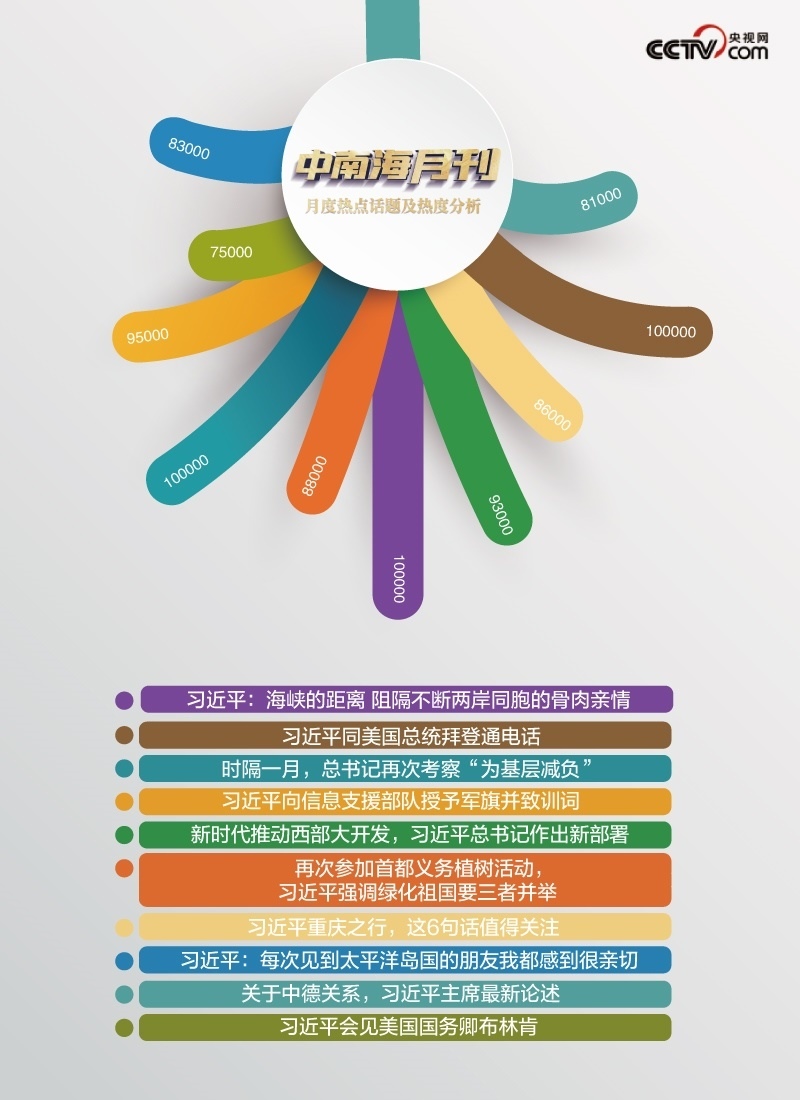央視網(wǎng)“智聞”系統(tǒng)提取分析2024年4月全網(wǎng)時政新聞熱點顯示,“時隔一月,總書記再次考察‘為基層減負(fù)’”“習(xí)近平向信息支援部隊授予軍旗并致訓(xùn)詞”“習(xí)近平同美國總統(tǒng)拜登通電話”等話題備受關(guān)注。