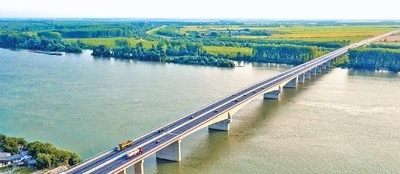 由中國(guó)企業(yè)承建的塞爾維亞貝爾格萊德澤蒙—博爾察大橋(普平大橋)。李 杰攝