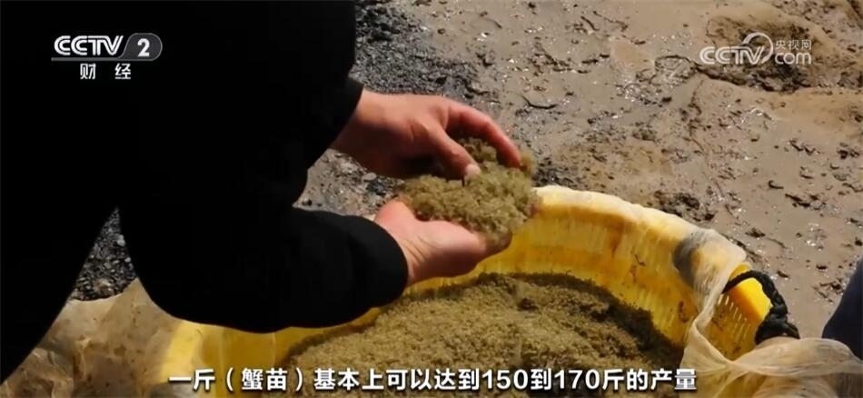 蟹苗采購商稱:“去年我們拿了1000多斤,一斤蟹苗可以達(dá)到150—170斤的產(chǎn)量,今年我們也拿了2000多斤蟹苗?!?/p>