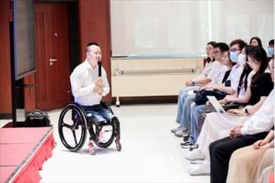 ?下圖為2023年5月,作為四川殘疾人勵志報(bào)告團(tuán)成員的代國宏走進(jìn)北京大學(xué),與學(xué)生交流。(四川省殘聯(lián)供圖)