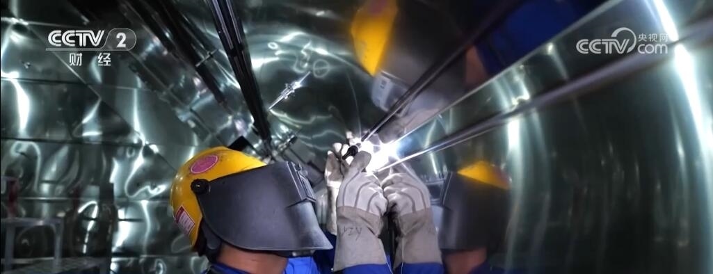 上海市長(zhǎng)興島造船基地,記者身后的巨輪是我國(guó)新一代天然氣運(yùn)輸船“綠能瀛”,它總長(zhǎng)299米,寬度是46.4米,這一艘船的用鋼量就達(dá)到了25000噸,其甲板面積相當(dāng)于3個(gè)標(biāo)準(zhǔn)足球場(chǎng),可裝載17.4萬(wàn)立方米液化天然氣,能夠滿足700萬(wàn)個(gè)家庭一個(gè)月的用氣需求。
