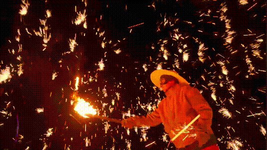 經(jīng)過努力和創(chuàng)新,“長城鐵花”已經(jīng)有了擊花、潑花、拍花等多種形式,“用木棒擊打鐵水、往道具上潑鐵水都非常好看,就和流星、滿天星一樣”。