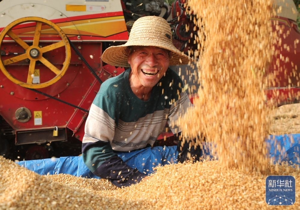 5月26日,河南省開封市尉氏縣邢莊鄉(xiāng)北丁莊村村民丁雙喜在收獲小麥。新華社發(fā)(李新義攝)