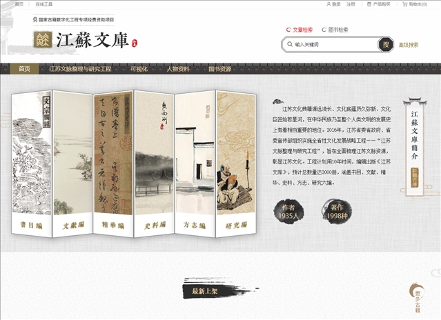 △《江蘇文庫》數(shù)據(jù)庫軟件平臺(tái)首頁截圖