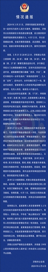 ·濟南警方通報學(xué)生與醉漢沖突被刑拘案:涉事學(xué)生屬于防衛(wèi)過當(dāng)。