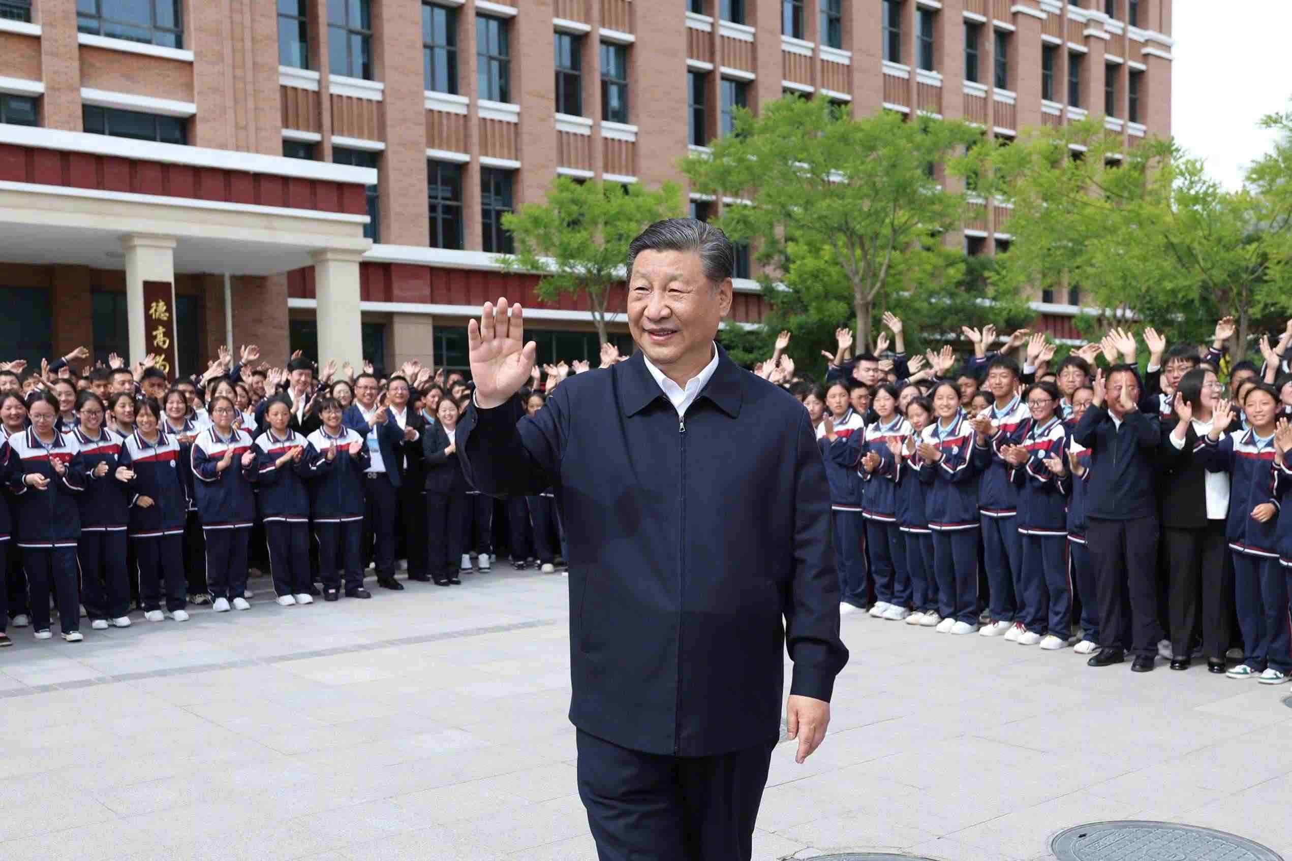 2024年6月18日下午,在青??疾煺{(diào)研的習(xí)近平總書記來到果洛西寧民族中學(xué),了解當(dāng)?shù)厣钊胪七M教育工作東西部協(xié)作和對口支援等情況。