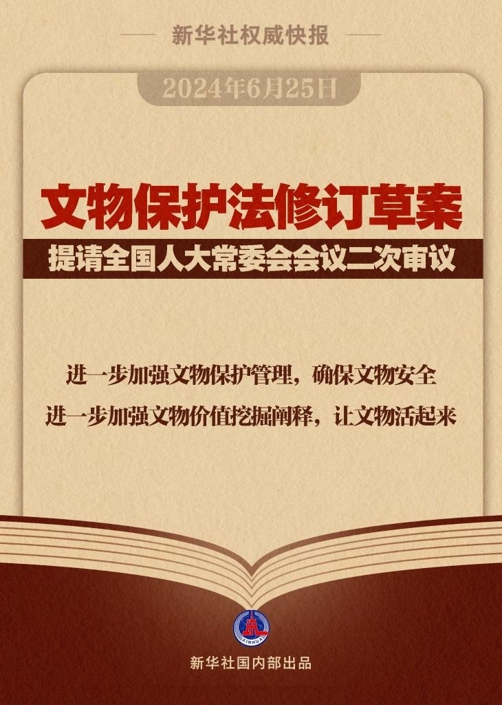 文物保護(hù)法修訂草案6月25日提請(qǐng)全國(guó)人大常委會(huì)會(huì)議二次審議。