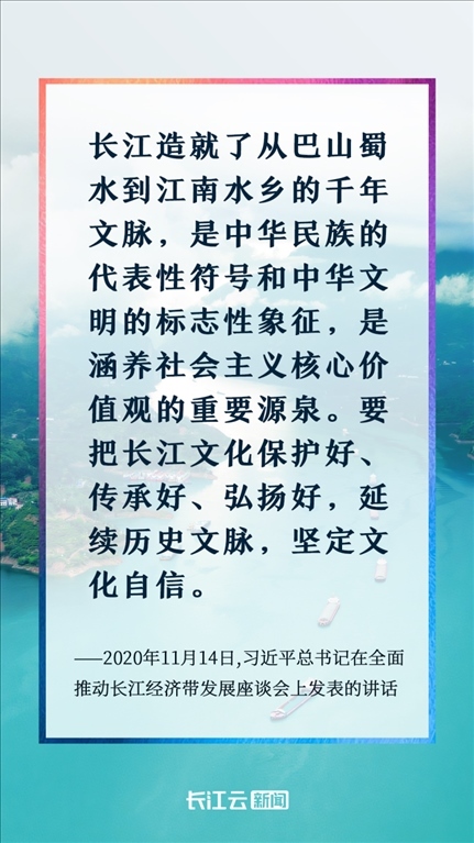 長江之水萬古奔流,千年文脈生生不息。黨的十八大以來,習近平總書記高度重視長江文化保護傳承弘揚,先后發(fā)表一系列重要講話,作出一系列重要指示批示,強調“要把長江文化保護好、傳承好、弘揚好,延續(xù)歷史文脈,堅定文化自信”。