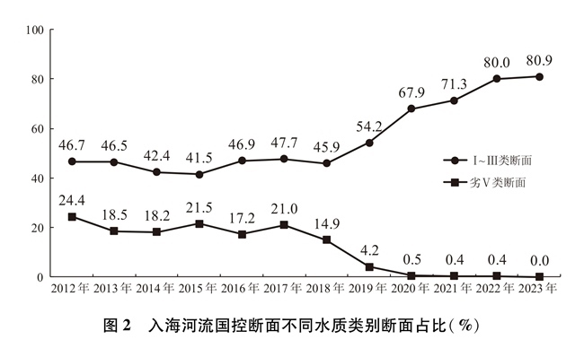 抓好入海河流污染防治。入海河流是陸源污染物輸入海洋的最重要途徑。中國(guó)積極提升城鎮(zhèn)污水處理質(zhì)效,建設(shè)改造雨污分流管網(wǎng),加強(qiáng)污水處理行業(yè)監(jiān)管,降低城鎮(zhèn)生產(chǎn)生活污水對(duì)入海河流水質(zhì)影響。2012年以來(lái),沿海地區(qū)污水處理基礎(chǔ)設(shè)施建設(shè)顯著提速,地級(jí)以上城市污水處理廠基本完成一級(jí)A提標(biāo)改造。開(kāi)展農(nóng)村環(huán)境整治,“十四五”以來(lái),沿海省份新增完成1.7萬(wàn)個(gè)行政村環(huán)境綜合整治,編制完成170個(gè)畜牧大縣畜禽養(yǎng)殖污染防治規(guī)劃,農(nóng)村生活污水治理率超過(guò)45%,大幅降低農(nóng)業(yè)農(nóng)村污水排放。著力破解流域氮排放過(guò)量的近岸海域水質(zhì)污染和富營(yíng)養(yǎng)化問(wèn)題,建立沿海、流域、海域協(xié)同一體的綜合治理體系,探索將總氮控制范圍向入海河流上游拓展,推動(dòng)入海河流實(shí)施“一河一策”總氮治理。2012-2017年中國(guó)入海河流國(guó)控?cái)嗝嫠|(zhì)整體保持穩(wěn)定并有所好轉(zhuǎn),2018年以后水質(zhì)整體大幅好轉(zhuǎn)。目前,入海河流國(guó)控?cái)嗝嫠|(zhì)優(yōu)良(Ⅰ~Ⅲ類)斷面數(shù)量約占整體的五分之四左右,喪失使用功能(劣Ⅴ類)斷面基本消除。