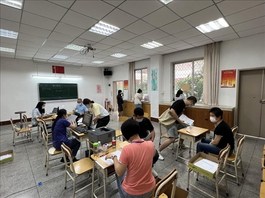 廣州市越秀區(qū)教育局現(xiàn)場審核返區(qū)生辦理材料,采用“提前網(wǎng)上預(yù)約、現(xiàn)場分批辦理”的方式進(jìn)行。廣州市越秀區(qū)教育局供圖