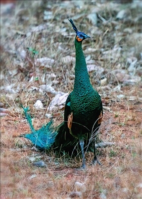 云南楚雄雙柏縣恐龍河自然保護區(qū)的綠孔雀(2023年4月20日攝)胡超攝/本刊