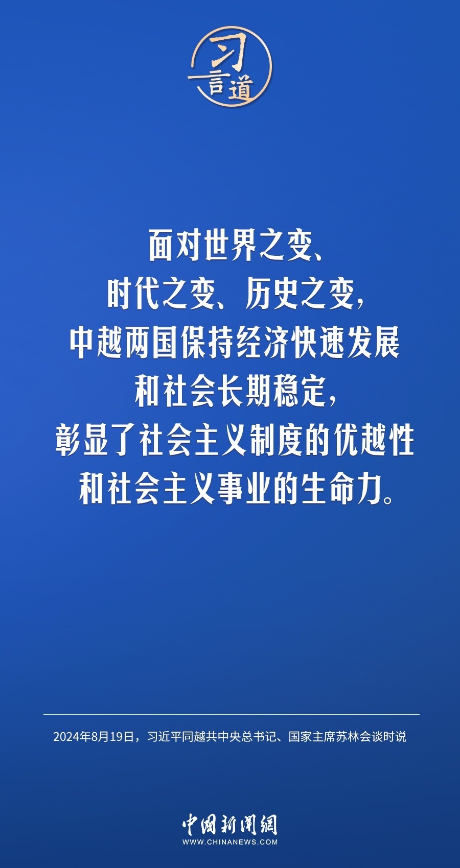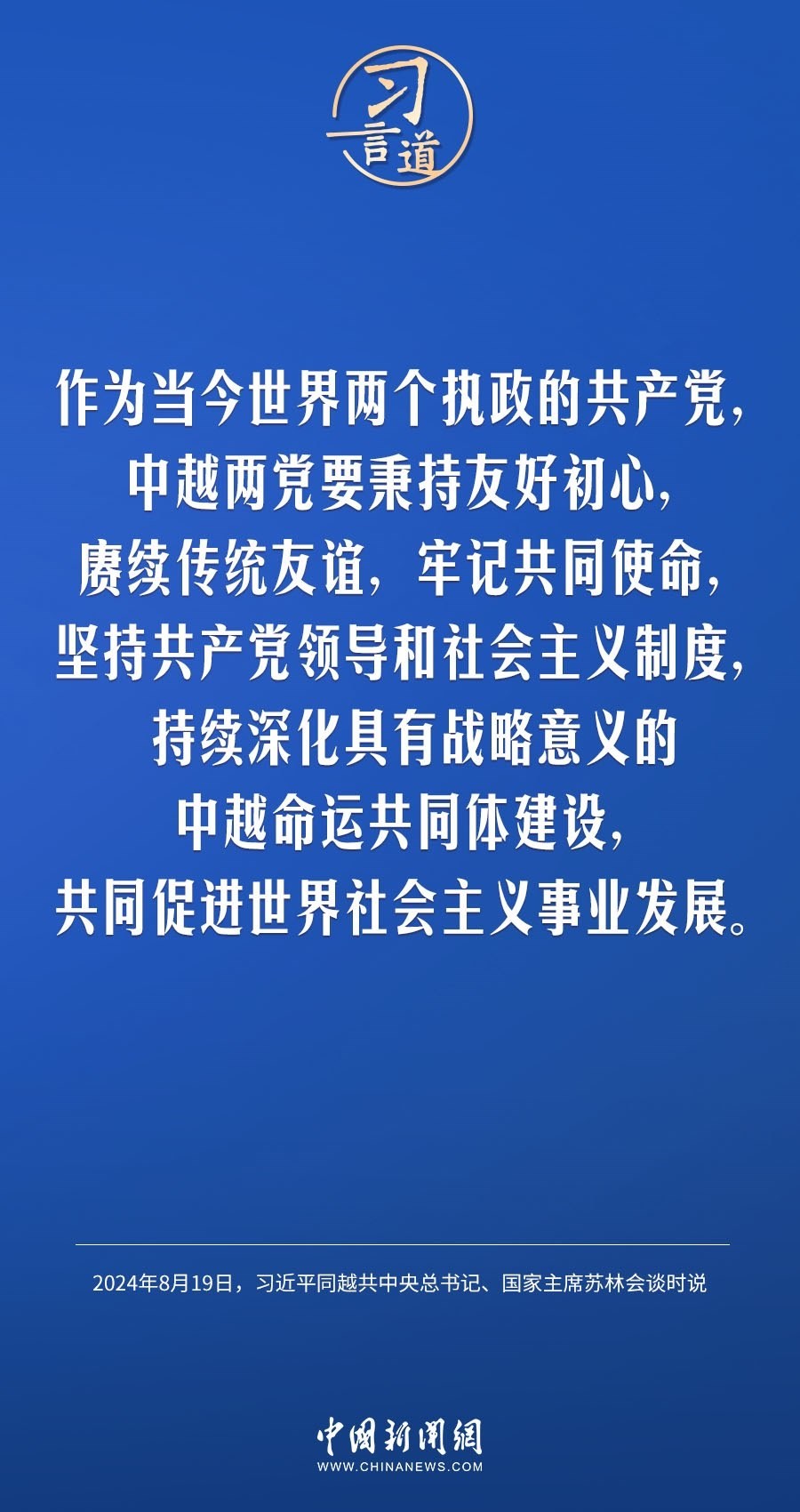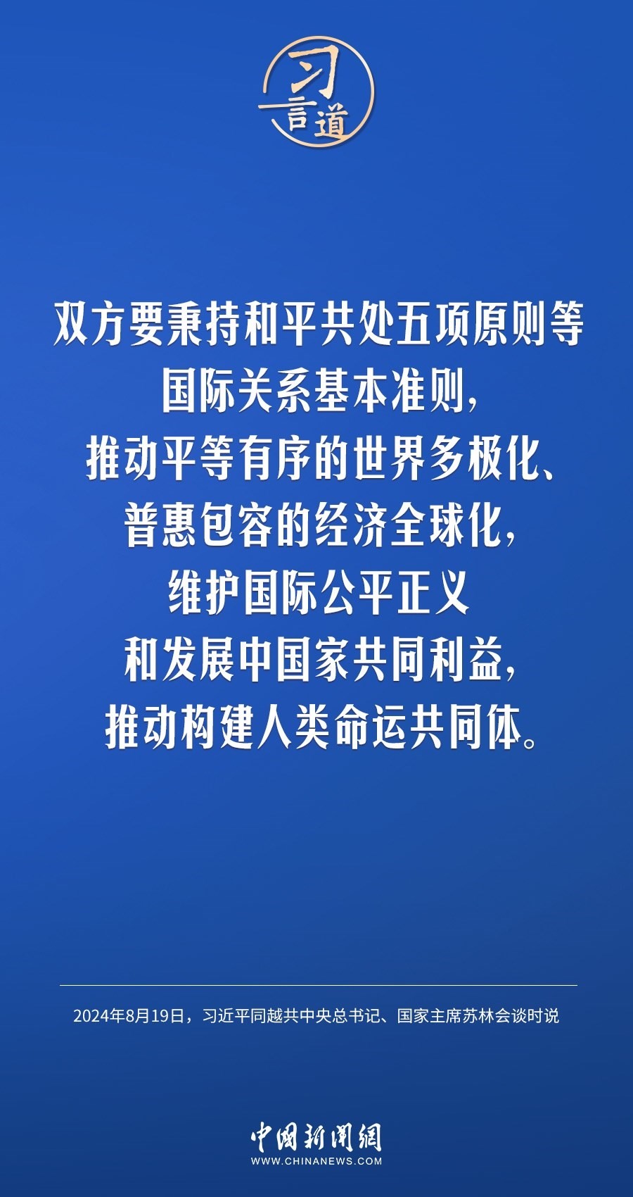 8月19日,中共中央總書記、國家主席習(xí)近平在北京人民大會堂同來華進(jìn)行國事訪問的越共中央總書記、國家主席蘇林舉行會談。習(xí)近平指出——
